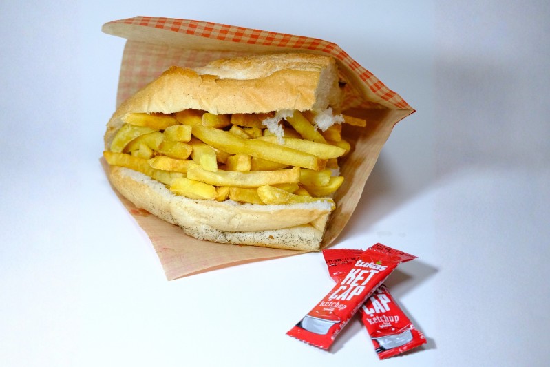 Yarım ekmek arası patates kızartması. Ketçap mayonez ile servis edilir.